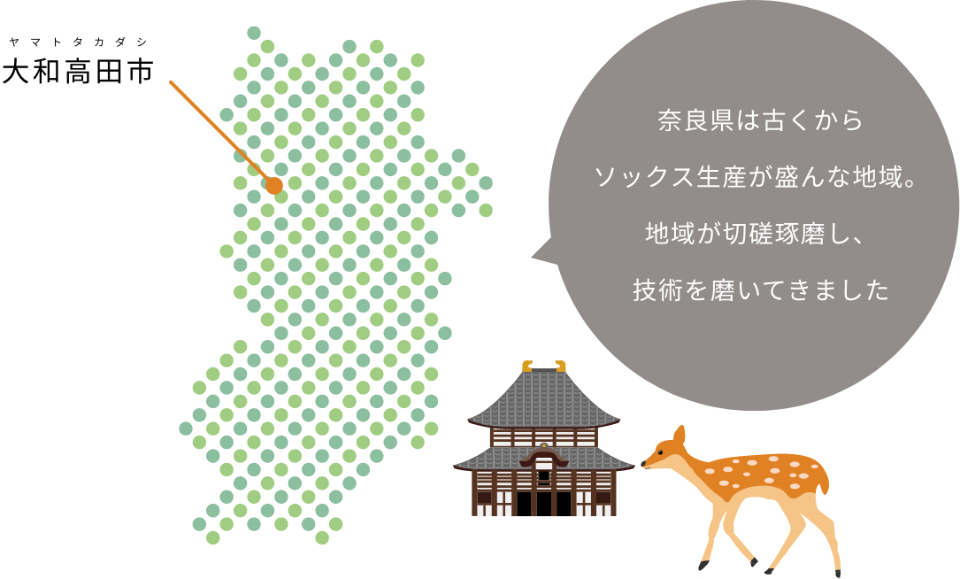 当店で販売しているソックスは、奈良県大和高田市にある自社工場で企画・生産しているアイテムになります。