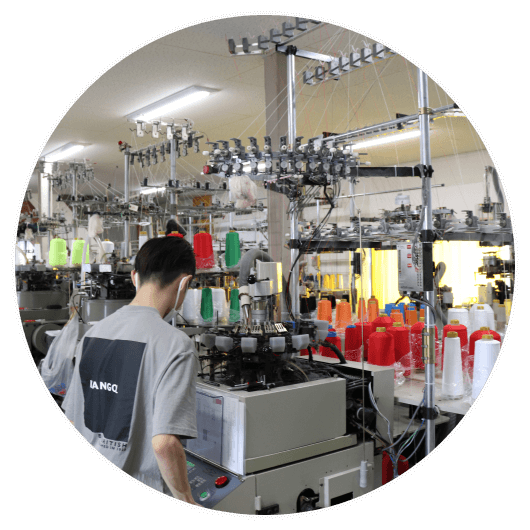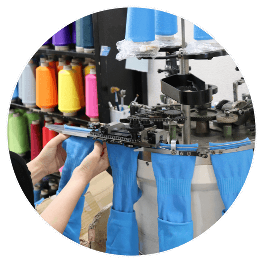 ソックスづくりのプロである職人の手によって、確かな品質・安心・安全にお使いいただける製品を製造・販売しております。