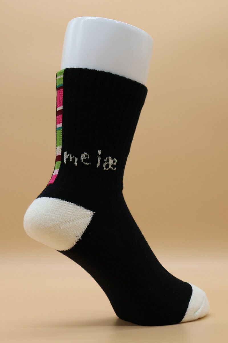 カラフルなラインが目を引くお洒落なソックス。踵からつま先までパイル編みでふんわりとした肌触り。クッション性にも優れています。テニスやゴルフなどのスポーツだけでなく、バスケットやジムトレーニングなど、インドアスポーツにもお使い頂けます。またコーディネートのアクセントとしてカジュアルユースにもお勧めです。